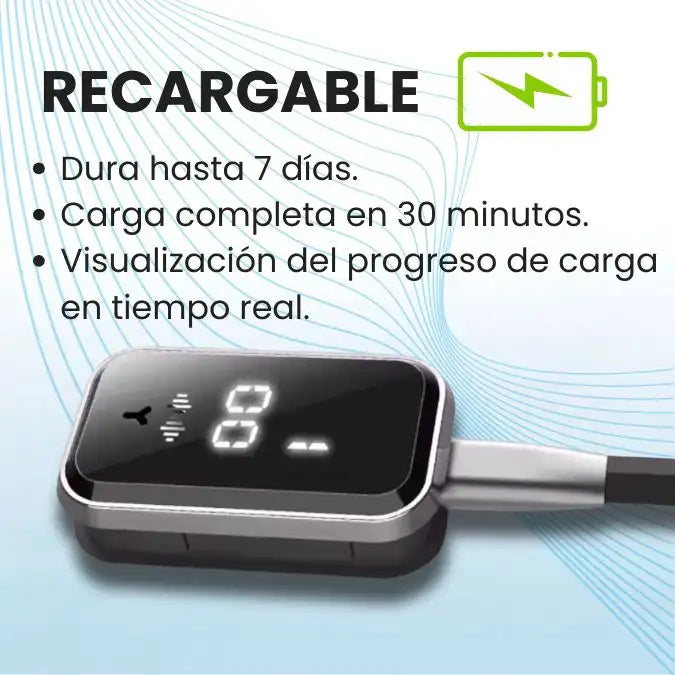 Solo basta con cargarlo 30 minutos para una semana completa de protección.