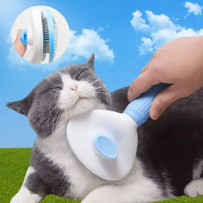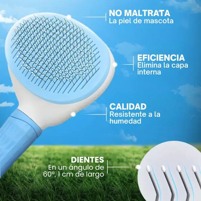 Este es el único cepillo con botón de un clic que elimina el 95% del pelo suelto sin lastimar o maltratar la piel de tu mascota.
